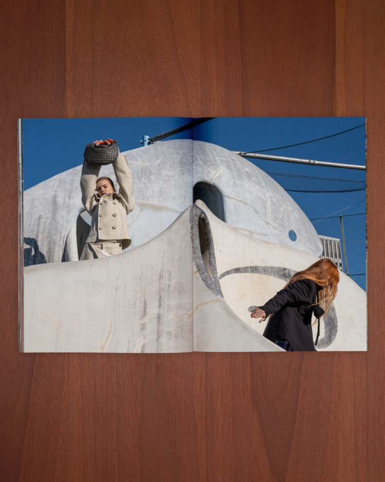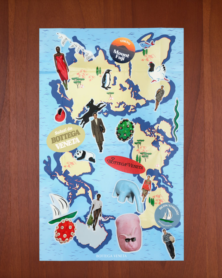 《ボッテガ・ヴェネタ》の第四作目となるFANZINEは、「オデッセイ:自由と希望に満ちた旅」がテーマの2024年サマーコレクションを軸に製作された。マグナム・フォト所属のフォトグラファー、アレック・ソスが、東京近郊の公園を舞台に撮影した写真や、その舞台裏、「旅の手帳」やオリジナルステッカーなどをまとめた全4冊で構成。コレクションのショー会場フロアに描かれた世界地図のイラストをプリントしたブックケースに収納されている。
