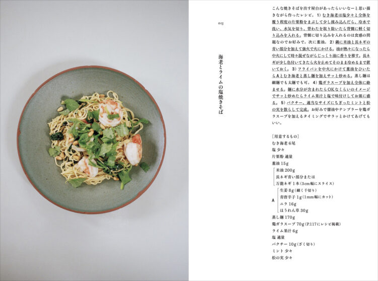 「LIKE」で提供される料理は、家庭的なものから、中華やエスニック、フレンチなど、広くさまざまなジャンルの要素が混交され、アレンジが加えられたユニークなものが揃う。本書にはそんな「LIKE」の定番メニューや歴代人気メニューから34品のレシピが、原氏の思い出とともに日記のように綴られている。原氏が特におすすめするレシピは、「LIKE」の看板メニューのひとつでもある「麻婆豆腐」だという。