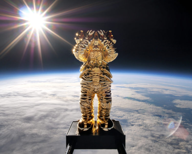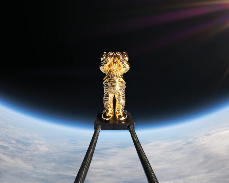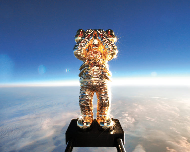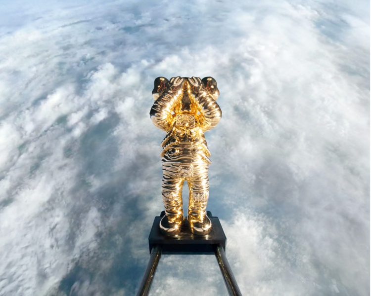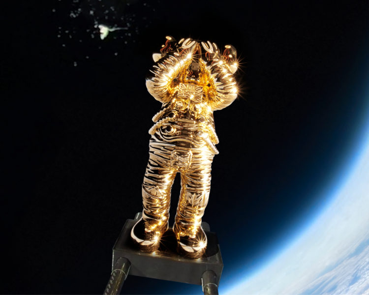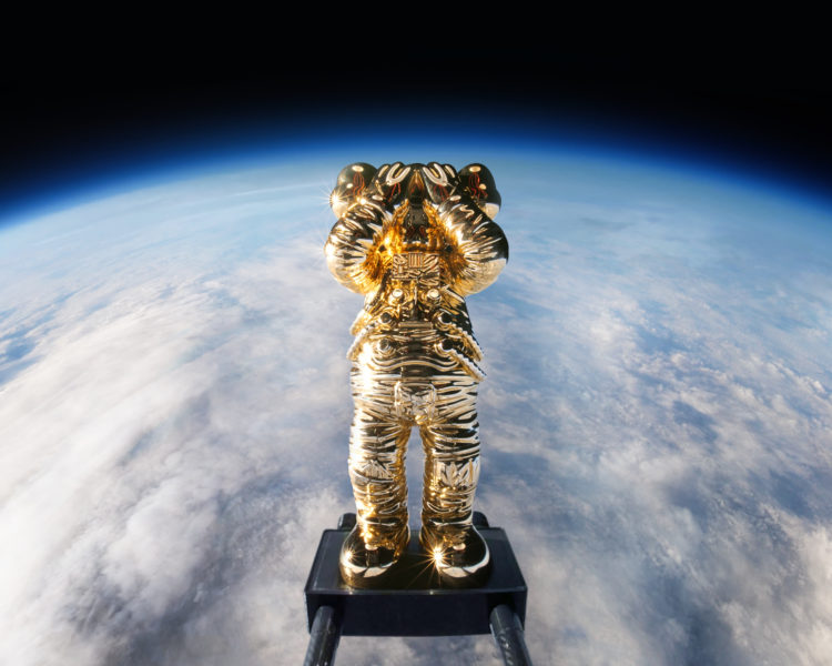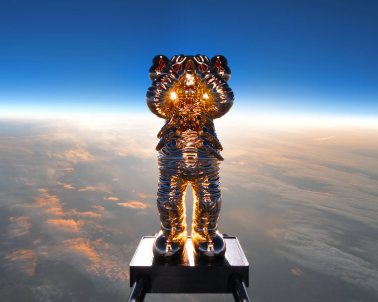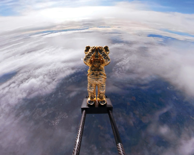 今回の「KAWS:HOLIDAY SPACE」の旅では、宇宙服を着用した“COMPANION”が探測気球を利用し、41.5km(136,296フィート)の成層圏に突入。超高速で上昇し、無重力状態で誰も居ない宇宙を2時間かけて彷徨い地球に戻った。この旅の準備には打ち上げから着陸まで約8時間がかけられており、この飛行プロセスは360度全周囲ビデオカメラで記録され、“COMPANION”の打ち上げという歴史的瞬間を捉え、同時に“COMPANION”誕生から20周年のメモリアルイヤーを刻んだ。