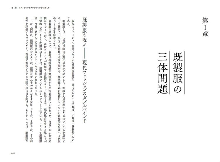 本書では、深刻な環境負荷と過剰生産に揺れる現代ファッション産業の構造的欠陥を「既製服の呪い」と定義。デザイン理論、先端テクノロジー、そして技術哲学を横断しながら、業界が歩むべき新たな道筋を提示する。