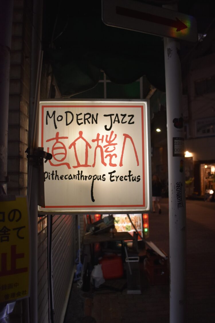 蒲田駅から徒歩5分、バーボンロードを抜け線路沿いの雑居ビルの3階に「直立猿人」はある。店内に入ると、まず2000枚を超えるモダンジャズのレコードが目に入る。音響を良くするために漆喰で仕上げられている10畳ほどの店内には、カウンターが5席、テーブルが8席設けられている。その独特な店名は、ジャズ・ベーシストのチャールズ・ミンガスが発表したアルバム「ピテカントロプス・エレクトス」に由来するという。