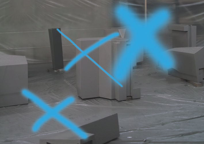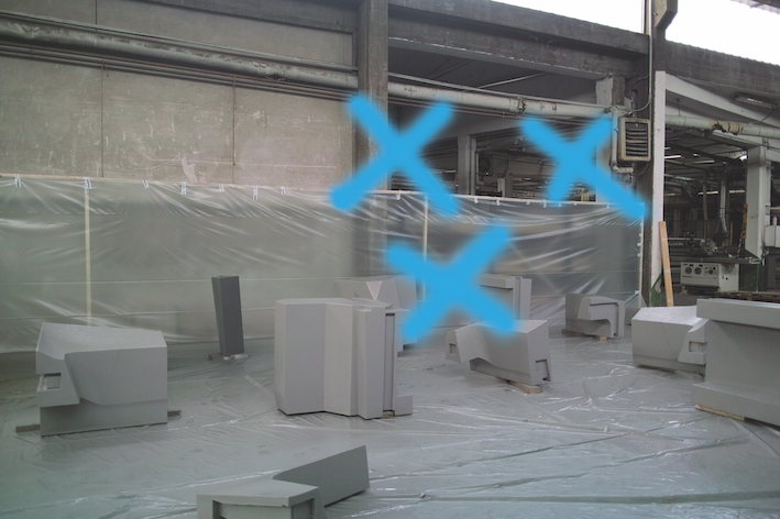 展覧会では、ソフトウェアテクノロジーハウスやクリエイティブオフィスの環境、社会的な構成要素を理解するために欠かせない基礎的な資料として、カットされた資材の現物と高解像度の画像が対比して展示される。