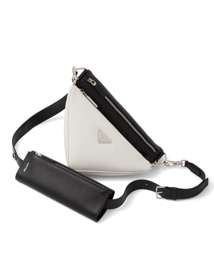 ウエアは洗練された色彩をまとったエッセンシャルなフォルムのジャケット、パンツ、 バミューダショーツ、ストライプパターンのシャツ、ブラックレザーコートや60年代のスタイルを反映したボンバージャケット、パンツが揃う。アクセサリーではプラダを象徴するフォルムを再解釈した「プラダ トライアングル」バッグやスニーカーが展開される。