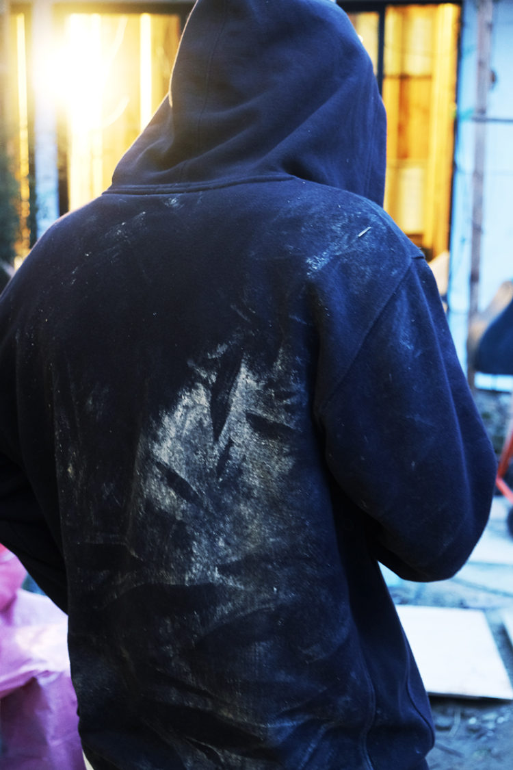 そして、彼の関心が現実世界へと対峙する写真へ深化した頃、山谷はコロナ禍で横須賀の築82年の3棟平野の古民家を自宅兼アトリエに改築するプロジェクトを始動。家族・友人・知人らを巻き込んで、自身も一から作業に加わった。山谷は土やコンクリートに触れ、横須賀の土地が持つ歴史やそこに暮らしていた人々の痕跡を掘り起こす過程に、自身が考えてきた写真表現との類似性を見出した。