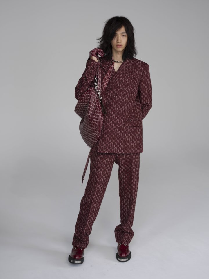 Jacket¥511,500 Pants¥225,500 Bowtie* Gloves* Loafer¥194,700 Bag¥698,500 Key Chain¥56,100 (GUCCI CLIENT SERVICE)