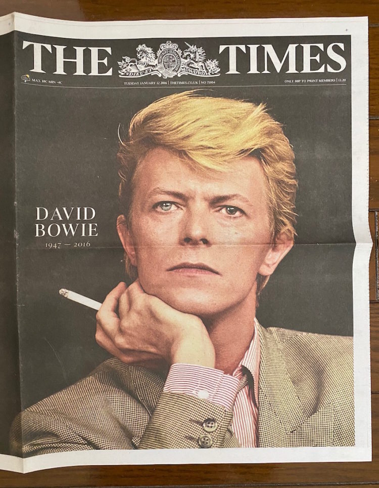 多くの新聞が一面でボウイを追悼していましたが、中でも『タイム』誌が一番かっこよかった。切り取って、今でも大切に保管しています。