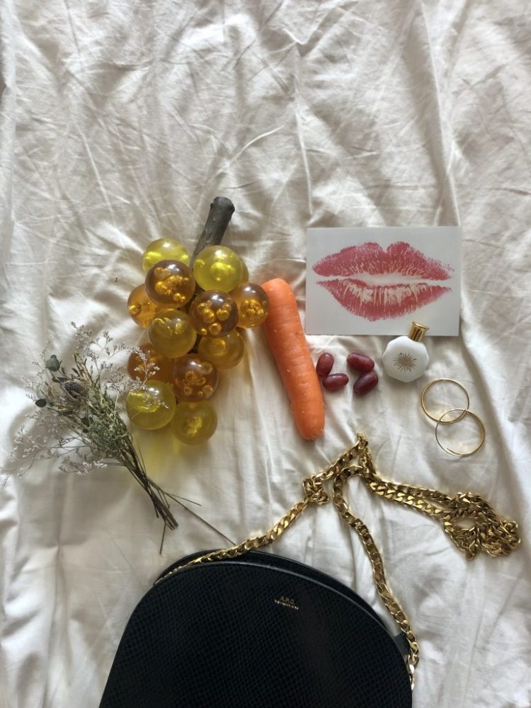 ドライフラワー、グレープのオブジェ、ニンジン、レッドグローブ、ポストカード、香水、ピアス、バッグ