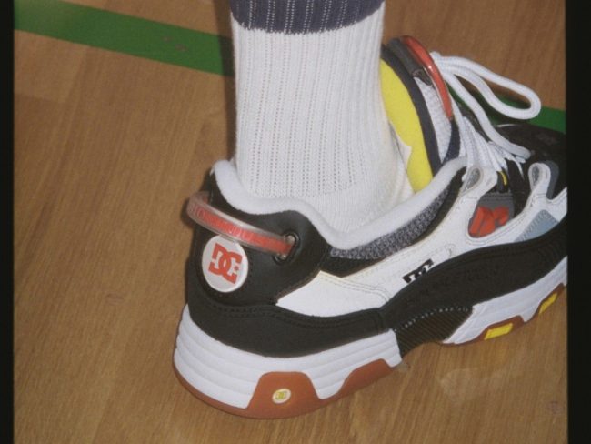 ナイキダンクのアッパーに、SFBジャングルブーツとアウトソール、エアハラチのヒールゲージを組み合わせたスニーカーを作りたいという、高橋盾氏のフットウェアに対する構想を形にした本作。それぞれ左足と右足の踵部分のストラップにあしらわれた、“CHAOS”と“BALANCE”の文字が印象的なスニーカーだ。