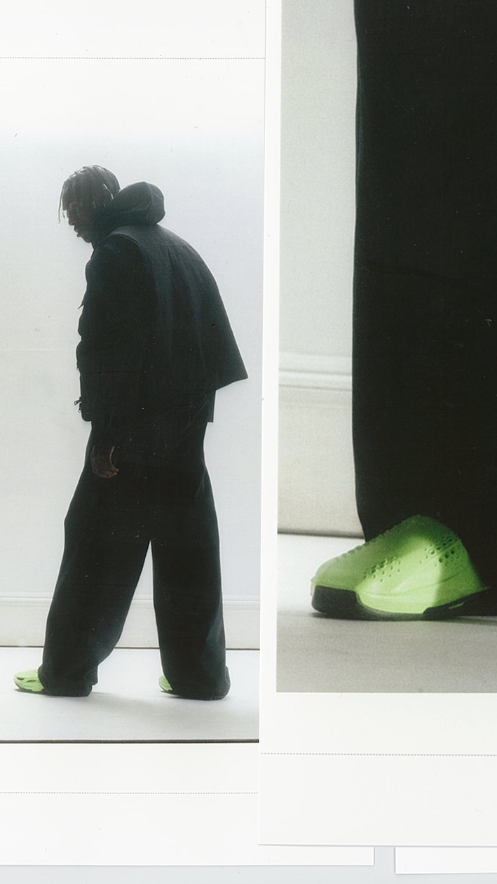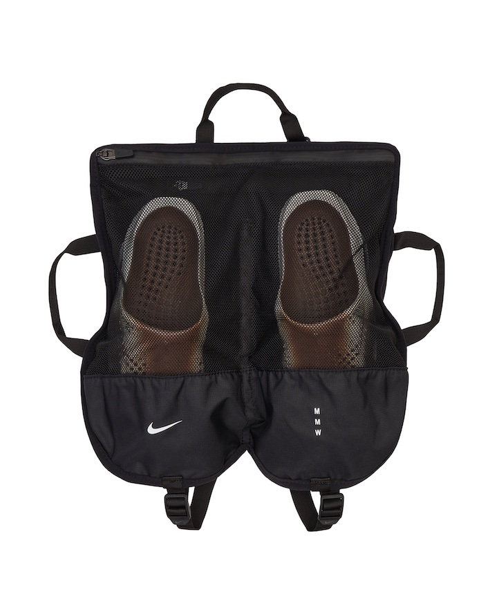 ファッションを常に新しい領域に押し広げるマシューが、アメリカとヨーロッパで触れた革新的な技術を活かして生み出した「MMW NIKE ZOOM 005 SLIDE」。アッパーとソールに存在する通気性を保つ穴が熱を逃し、足を涼しくドライに保つ。そして、二重構造のアウトソールとその間に内蔵されるプレートが、より快適な履き心地を実現する。シューズには持ち運びに適した旅行用のバッグも付属する。