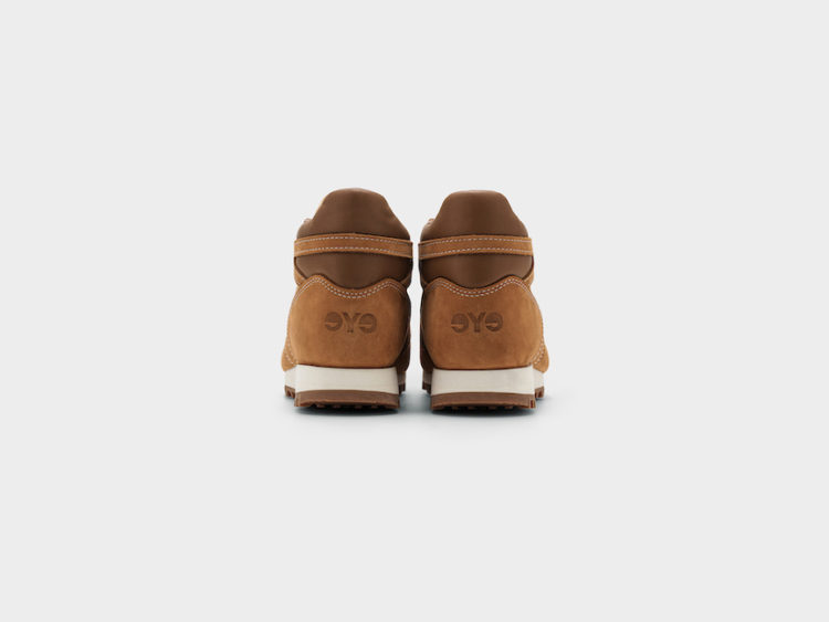 《eYe ジュンヤワタナベマン》は、軽くて耐久性のある編み上げ式の「Rainier」に、上質な手触りのヌバックとコーデュラナイロンによるアッパー構造、そして、洗練されたベージュのカラーウェイを取り入れ、アウトドアだけでなくタウンユースにも馴染みやすいデザインを施した。