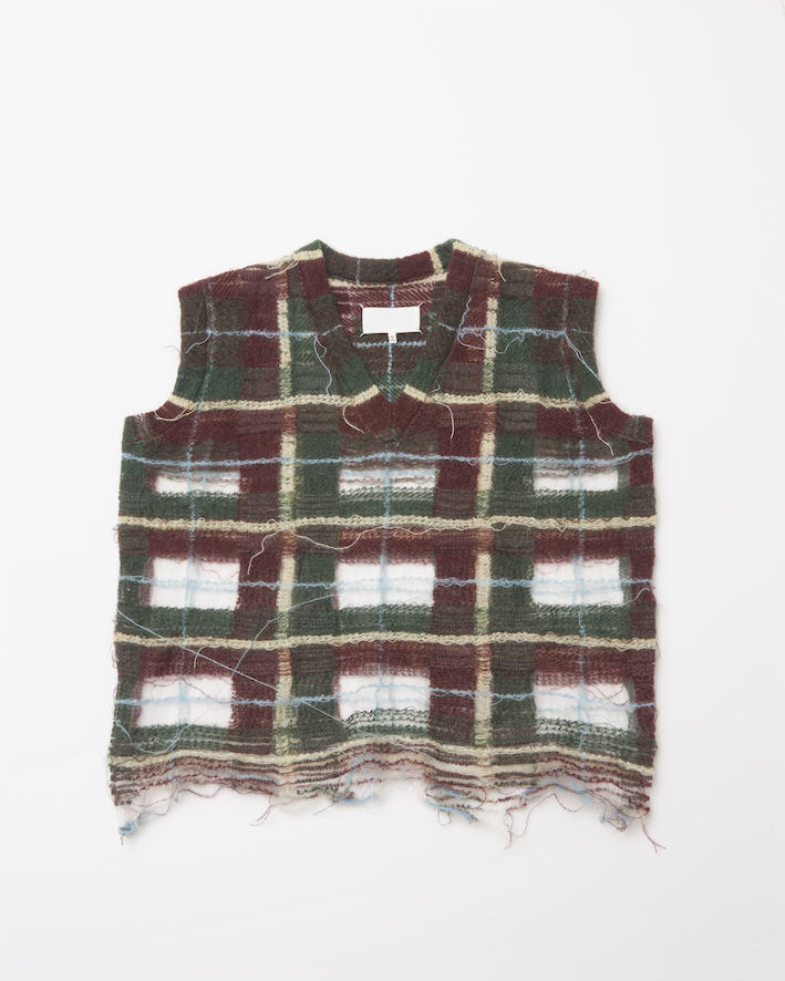このMaison Margiela OMOTESANDOのオープンを記念して、23年秋冬「Co-Ed」コレクションで登場した、アメリカンチェックのカーディガンとベスト、《ペンドルトン(PENDLETON)》とのコラボレーションコート、過去の遺産を新しいものに再生するという概念を提唱する「Recicla」シリーズのハットバッグ、そしてエコファーとエコシアリング素材の「5AC」バッグがエクスクルーシブアイテムとして展開。