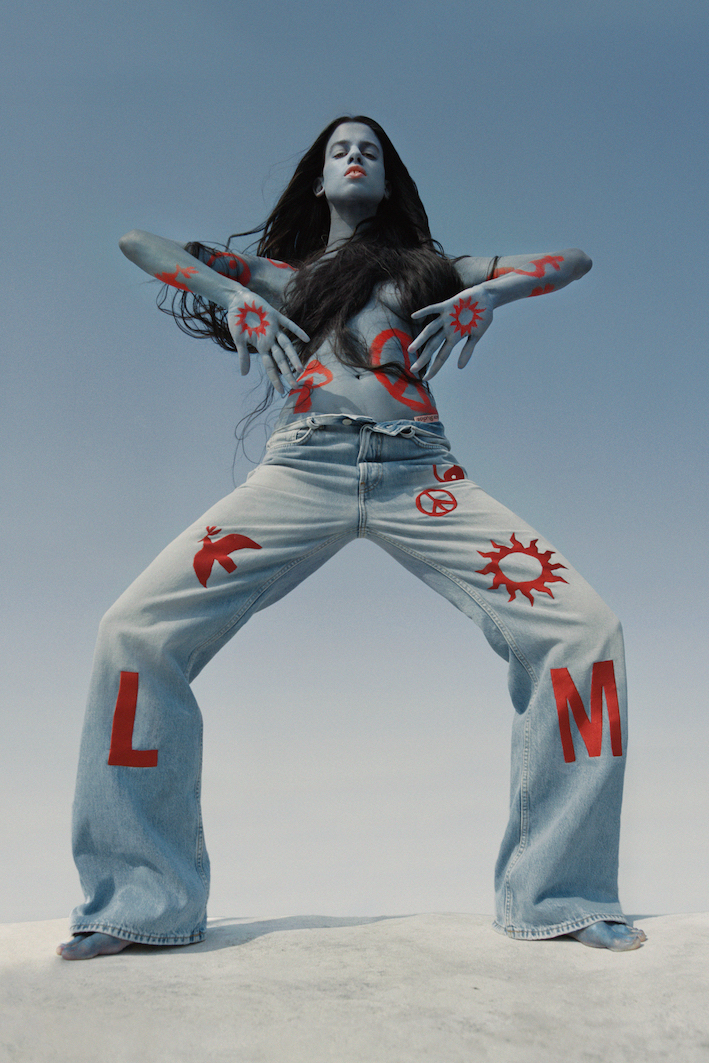 このデニムのパーソナライズサービスを開始するにあたり、《アクネ ストゥディオズ》は、フォトグラファーのシスル・ブラウンとコラボレーションし、1970年代の精神とボディペインティングからインスピレーションを得たキャンペーンイメージを作成した。イメージには、アーティストでモデルのLily McMenamyを起用し、独創的で力強く、エネルギーに満ちたキャンペーンを展開している。