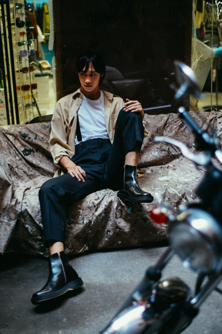 また「ジャックポット」ではそのチェルシーブーツでショートフィルムを撮影。イギリスのカルチャーにフランスのエッセンスを加えたアイテムを東京で撮りおろした一本だ。異なる土地の要素が見事に調合された作品となっている。