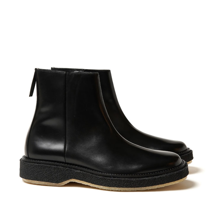 パリのレザーシューズブランド《アデュー》が、新宿歌舞伎町の目の前に店舗を構えるハイエンドなセレクトショップ「ジャックポット」とコラボレーションしたブーツを2型ローンチする。お互い共通するブリティッシュパンクに対する思いがベースとなり、今回チェルシーブーツと言うアイコニックなアイテムを《アデュー》の切り口で作り上げた。このブーツはイギリスチェルシーブーツにフランスの《アデュー》のエッセンスを入れることにより、モダンでアップデートされた、男女ともに楽しめるアイテムとなった。