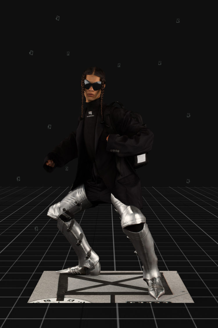 ゲームのラストシーンで大胆に姿を現したメタルスーツや他のルックに登場するアーマーは、ファッションとは要因やジャッジメントから身を守るために着る一種の「鎧」というコンセプトのもとに制作。その他NASAやPS5とのコラボレーションアイテムなどを含め、《バレンシアガ》らしさ全開のラインナップを取り揃えた。