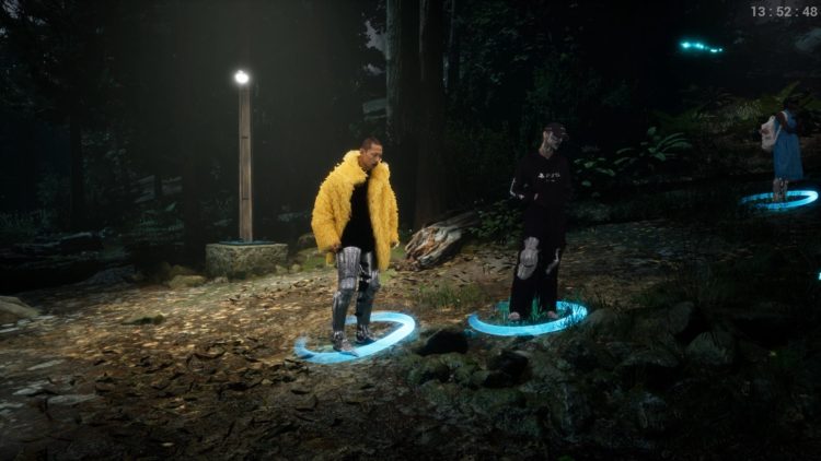 倉庫内とシークレットレイヴが行われている暗い森を抜けると、山の頂上に到達。中世ヨーロッパ風の騎士の鎧のルックを身に纏ったキャラクターと共にエンディングを迎える。