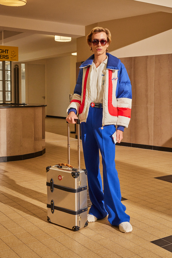 パリの老舗レストラン「ル・トラン・ブルー」や空港を舞台に、クラシックな高級素材やグラフィックを用い、煌びやかな1990年代終わりのパリを表現した本コレクションは、デザイナーのシャラフ・タジェルが育ったこの時代へのファンタジーと超現実主義へのオマージュが捧げられている。
