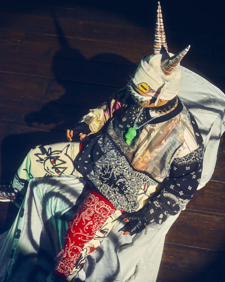 JUN INAGAWAやCOIN PARKING DELIVERY、Yabiku Henrique Yudi など7人のアーティストによるオリジナルデザインのアートワークとヴィンテージバンダナをミックスしたパッチワークのプロダクトが印象的なコレクションとなっている。