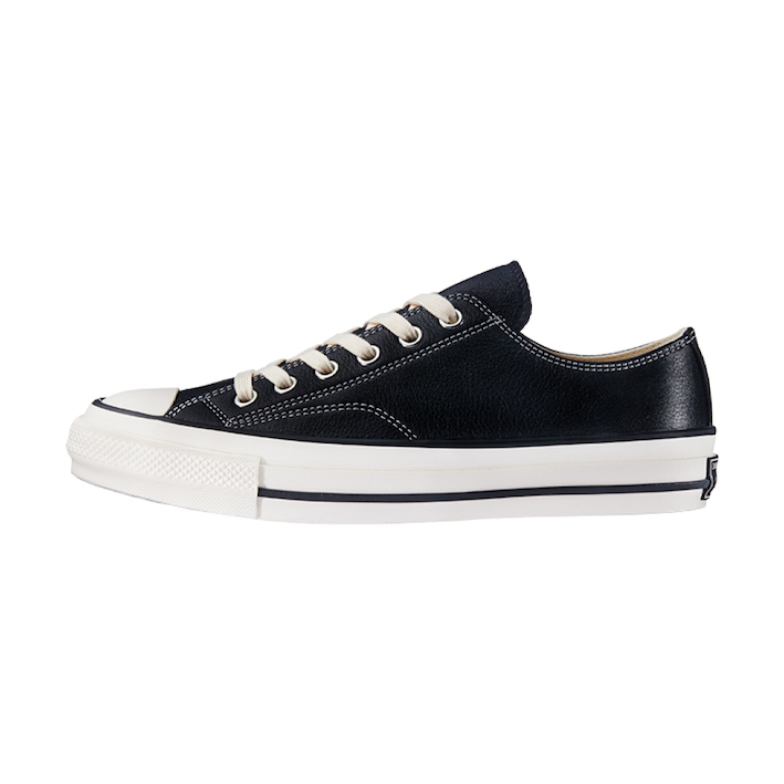 「CHUCK TAYLOR LEATHER OX」は、環境に配慮したドライタンニングによって丁寧になめされたセミシャイン仕上げのフルグレインレザーを採用。