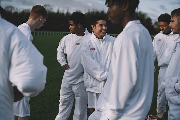 デザイナー小森啓二郎が手がける《コモリ(COMOLI)》が、イギリスのマンチェスター発祥のフットボールブランド、《アンブロ(UMBRO)》とのカプセルコレクションを《コモリ》直営店および限られたショップで12月16日(金)に発売する。