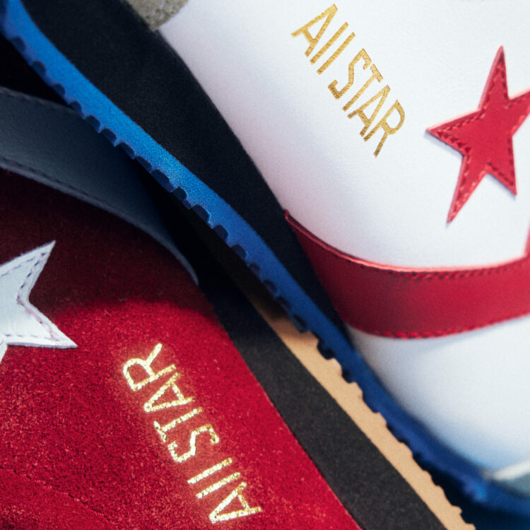 「ALL STAR TRAININGSHOES」は1975年にリリースされたアイテムで、50周年を迎えるにあたり、今回、クラフトマンシップを感じさせる日本製モデルとして登場する。当時のフォルムやシューレースの素材、箔押しなどのディテールを細部まで忠実に踏襲しながら、機能性をアップデート。インソールはクッション性に優れたE.V.A.と「PORON®️」の2層構造を採用し、アウトソールは耐久性、クッション性、重量、すべてのバランスに優れた「VIBRAM®️ NEWFLEX」コンパウンドを採用するなど、最新技術で快適性を追求。クラシックなルックスとハイスペックな履き心地を両立させている。カラー展開はレッドとホワイトの2色で、アッパーは、レッドはスエード、ホワイトはレザーを採用した。また、CONVERSE STORE HARAJUKU、COVERSE OFFICIAL ONLINE SHOP、DOVER STREET MARKET GINZA、DSMG E-SHOPではスエードを採用した限定となるブラックを展開する。