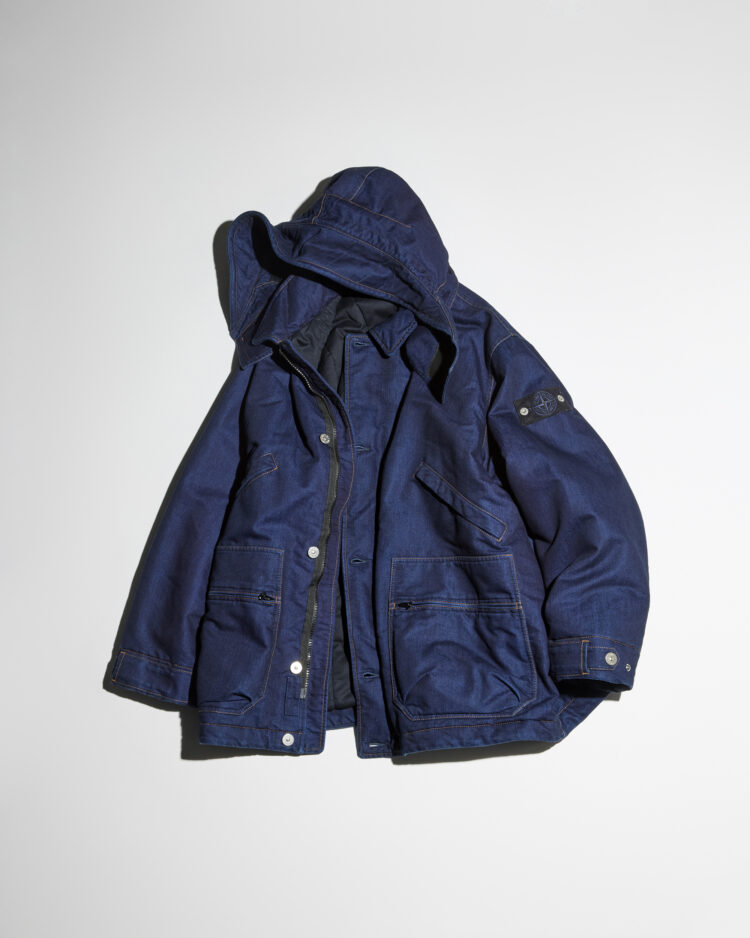《ストーンアイランド》が2025年秋冬に発表する新プロジェクト「DENIM RESEARCH」。ブランドが誇る革新性と技術を、アパレルの象徴的存在であるデニムに応用した実験的試みだ。ヨコ糸には中空構造を持つポリプロピレンを採用し、糸内部に光を反射させることで奥行きある鮮やかなブルーを表現。さらにインディゴ染めのコットン糸をタテ糸に用いることで、伝統的な風合いを残しつつ、従来より大幅な軽量化を実現した。テクノロジーとクラフトマンシップの融合が生み出す、新世代のデニムだ。
