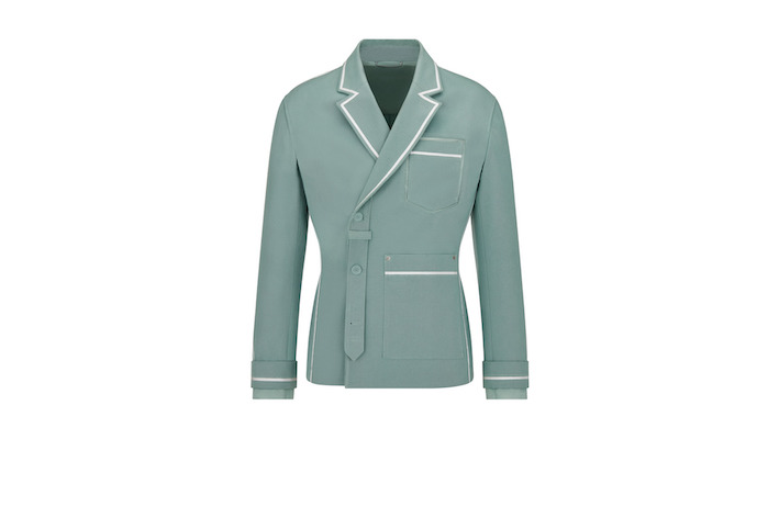 《ディオール》の巧みの技が感じられる「ガーデナージャケット」。揃いのパンツに合わせてモダンに着こなしてほしい。