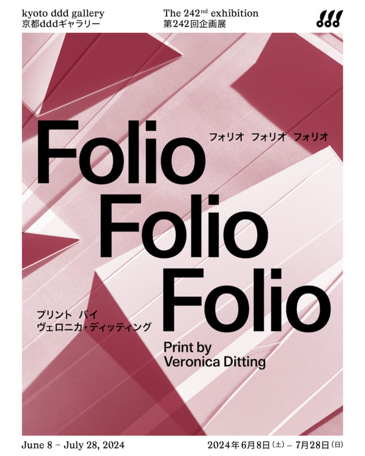 ロンドンを拠点に活動するクリエイティブディレクター兼グラフィックデザイナーのヴェロニカ・ディッティング(Veronica Ditting)による展覧会「Folio Folio Folio: Print by Veronica Ditting(フォリオ フォリオ フォリオ:プリント バイ ヴェロニカ・ディッティング)」が、「京都dddギャラリー」にて開催される。