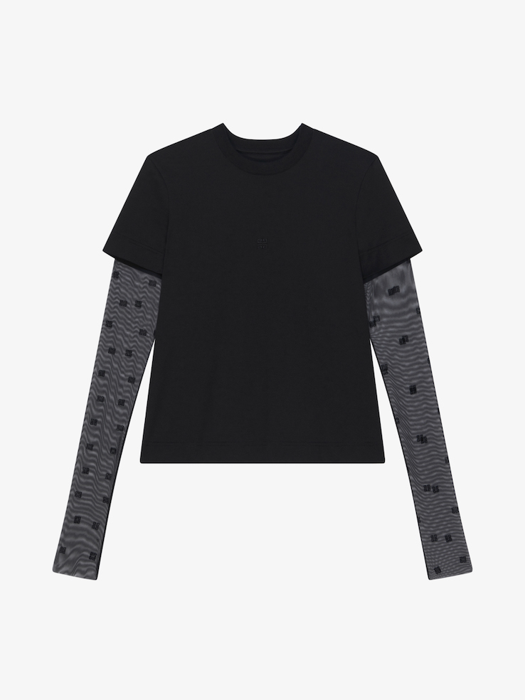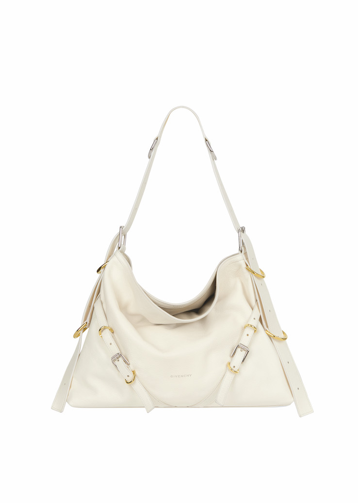 ウィメンズでは、シンプルなラウンドネックTシャツと4Gロゴの刺繍入りロングスリーブをレイヤードしたプルオーバーや、スキニーデニム、ポケット付きカーゴスカートなど、ボトムスも数多く揃う。レザーグッズには世界的なヒットを記録している新作バッグ「ヴォワイユー」、ベストセラーの「Gトート」、「アンティゴナ」など様々なモデルを展開。さらに、プラットフォームソールが特徴のアイコニックな「マシュマロサンダル」は、ブライトピンク、ピスタチオ、クラウドブルーなどの春らしいカラーパレットでラインナップした。