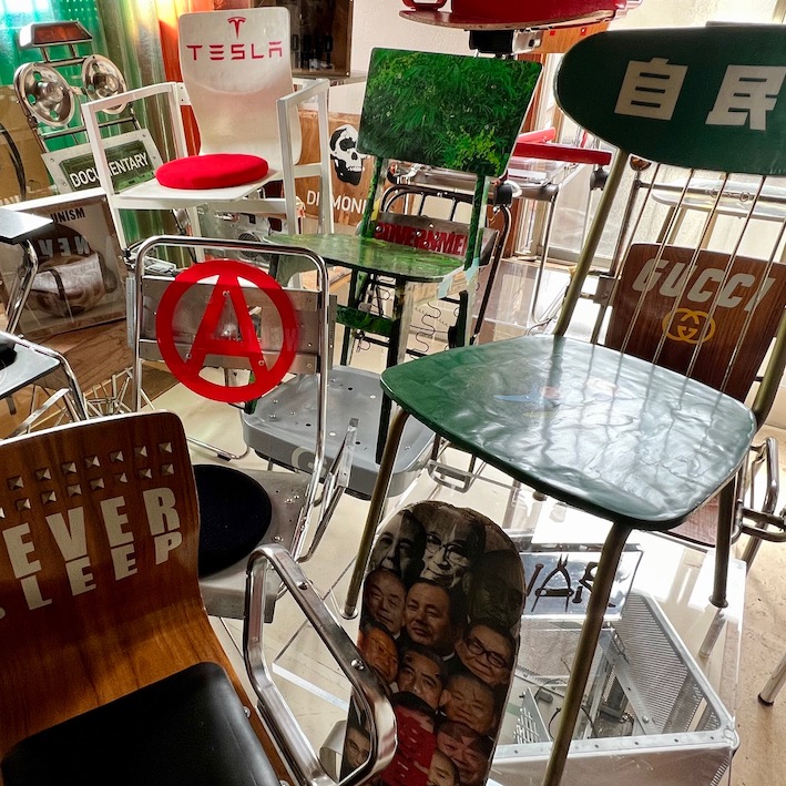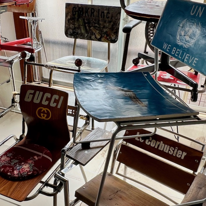 《GMKR(ゴミカラ)》は、廃棄品を用いて様々なインテリアへと再構築することで、新たなプロダクトや価値を生み出しているブランド。およそ1年ぶりとなる本個展は、アーティストの大橋秀吉が最も重要なインフラの一つだと考える、収集運搬事業にフォーカス。循環型社会への参加を果たす取り組みにリスペクトを抱き、産業廃棄物収集運搬車に表示義務付けられているプレートをテーマに選んだという。再構築された20脚弱の椅子、壁掛けやオブジェなどを展示する。