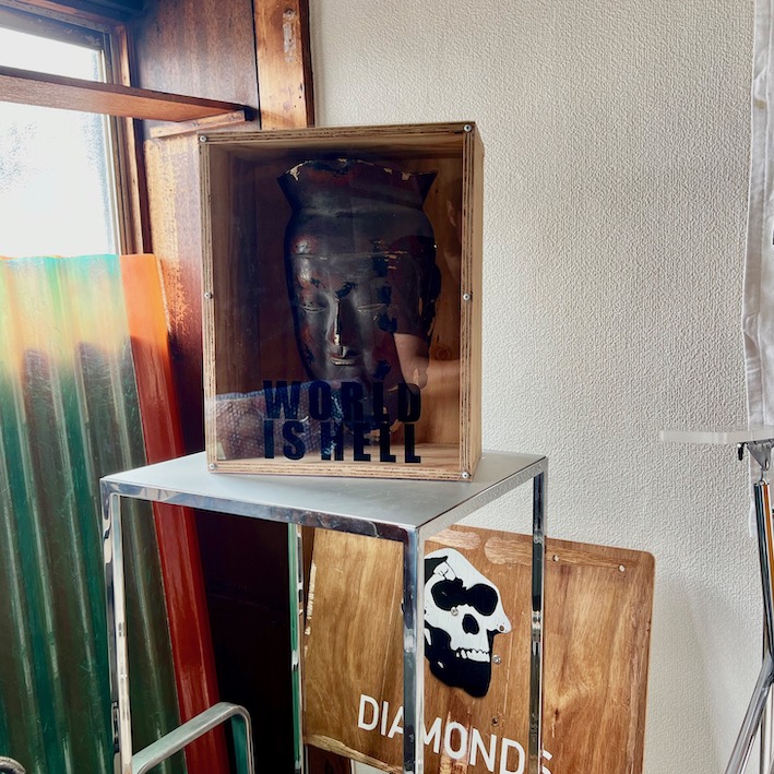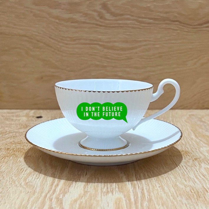 併せて「SUNTAINABLE DISHES DIGs」通称SDGsの第3弾が開催される。《GMKR》が街中で偶然出会った「ご自由にお持ちください」の食器の中から「DIG」、気に入ったものを持ち帰りロゴを入れて再び焼いた食器を再販するという企画だ。今回食器に施された“I DON’T BELIEVE IN THE FUTURE”というメッセージは、《GMKR》が度々作品に使用しており、展示期間の中頃に焼きあがってくる予定だ。SNSにて告知する。
