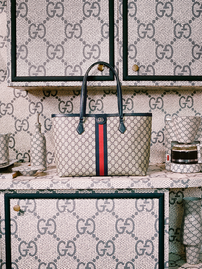 《グッチ》の伝統を物語るGGキャンバスのアイテムが、ブルー&ベージュのカラーを纏って GUCCI LOVE PARADE コレクションに登場。