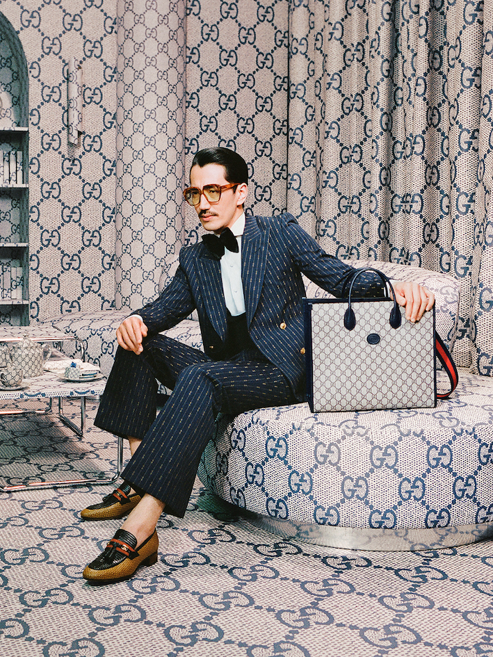 《グッチ》が1970年代前半のブルーGGキャンバスを復刻したクラシックな雰囲気のアイテムを多数発売する。