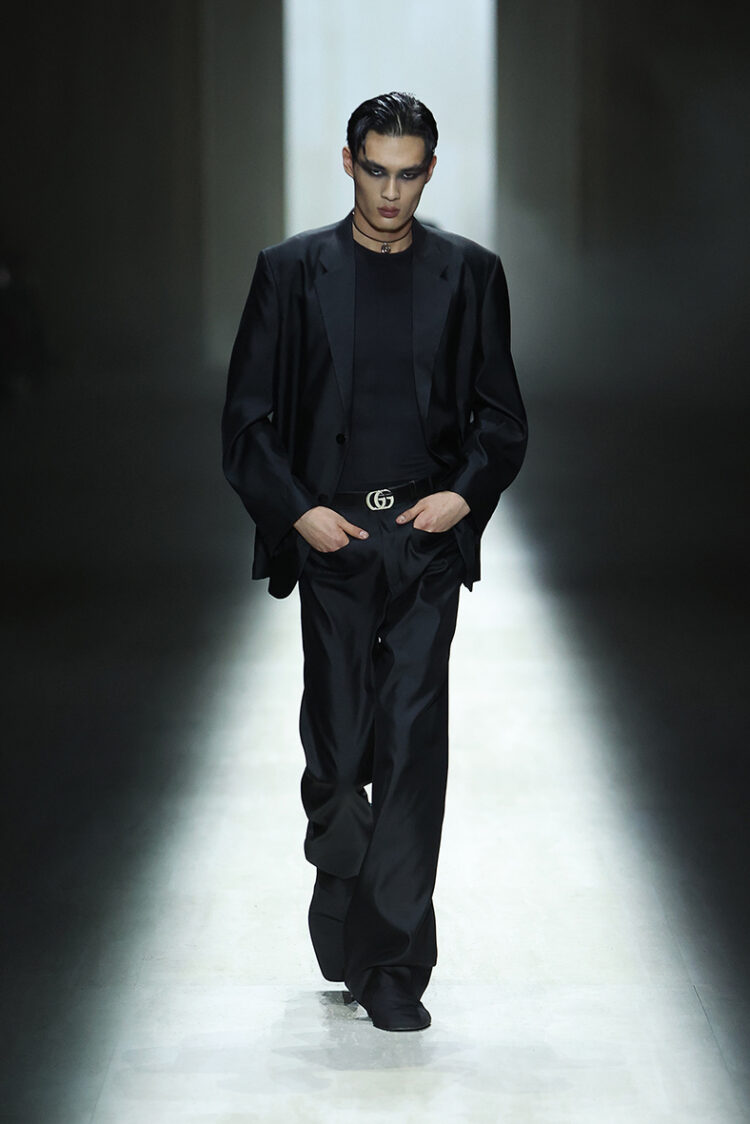 《グッチ(GUCCI)》が、アーティスティック・ディレクターデムナのデビューコレクションとして、初となるファッションショー“Gucci Primavera”をミラノで発表した。昨年3月に《グッチ》のアーティスティック・ディレクターに任命されて以来、約1年にわたり準備が進められてきた待望のデビューコレクション。大理石の彫像に囲まれた記念碑博物館のような壮大な会場は、イタリア文化における《グッチ》の歴史的価値と存在感を象徴する。音楽はデムナのパートナーとしても知られるlokiがキュレーションを担当し、5つの異なるジャンルの音楽をひとつの美学に融合したサウンドが会場に響き渡った。コレクションは、《グッチ》の中核にあるデザイン哲学を体現しながらも、軽やかさや着心地のよさ、身体そのものへの意識を全面に押し出し、シルエット、テクスチャー、素材における新たなボキャブラリーを確立した。