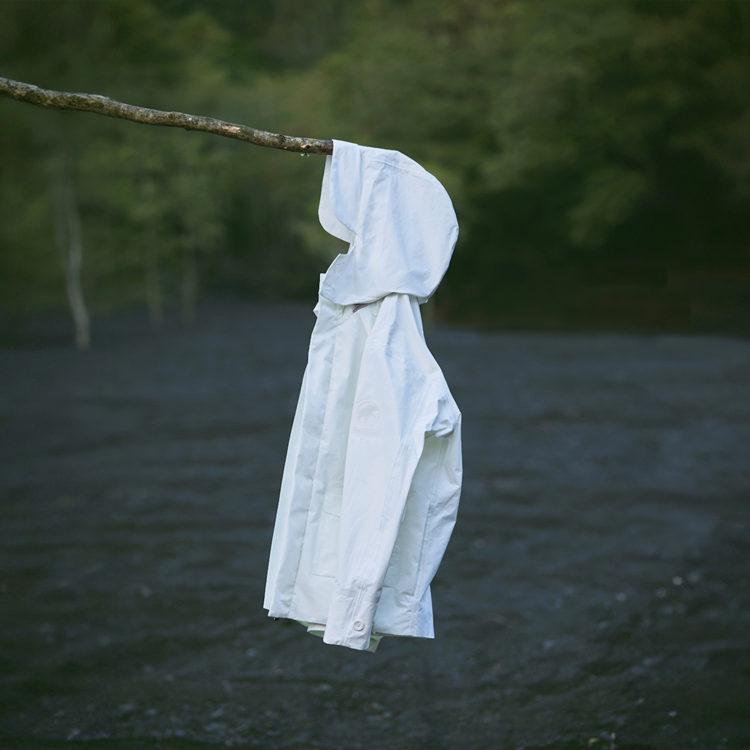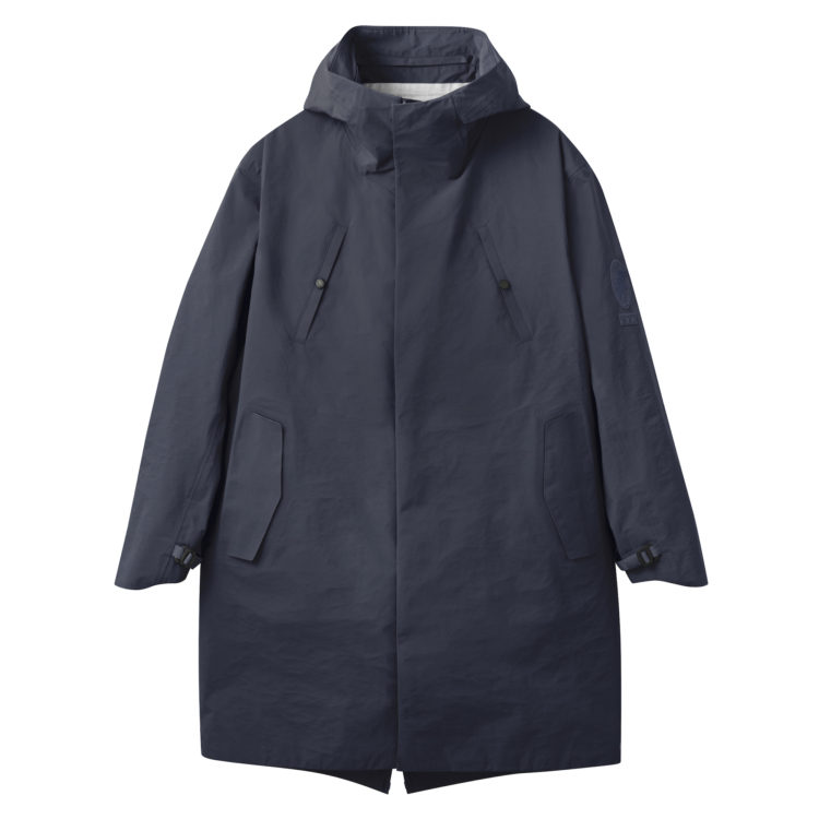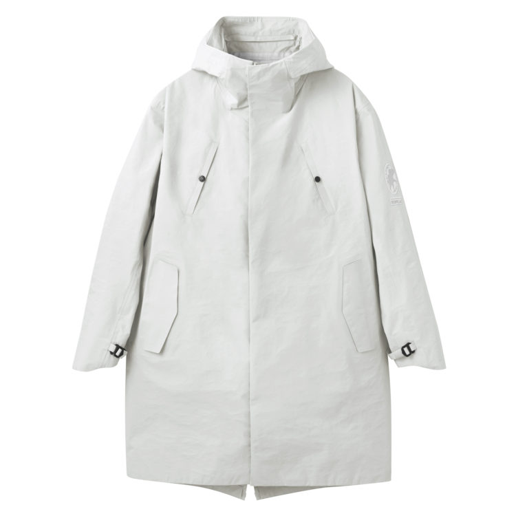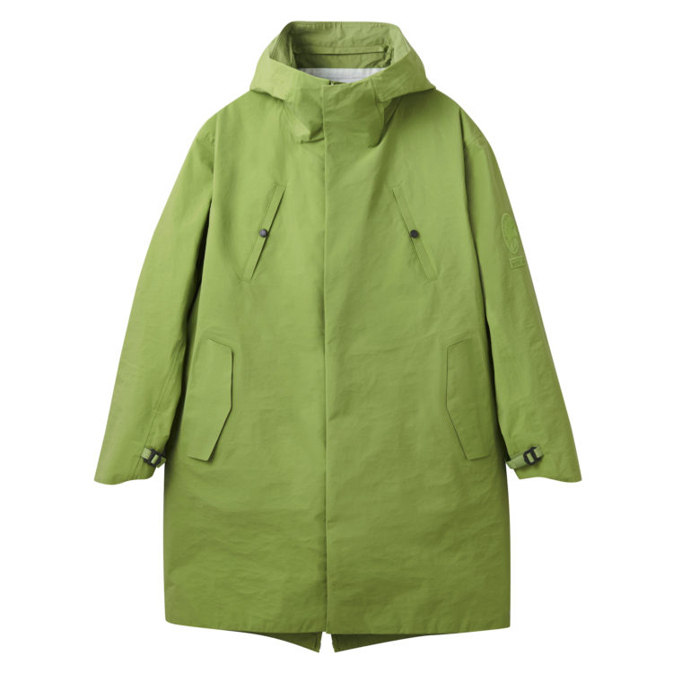 今回発売されるフィールドジャケットとコートは、《ハンティング・ワールド クラフテッド バイ デサント.ラボ》が独自開発した3レイヤーの新素材MILIFE® CROSS LAMINATED 3Lを採用。裏材に、和紙のようなパリッとした質感を持つ高機能積層布ミライフ®を使用することで、高機能素材特有の肌ざわりの悪さを改善した。また、表の基布に、消費者による使用がされる前に廃棄された原料から紡績したリサイクルナイロンの糸を使用。軽量かつ防水透湿性に優れながらも、環境にやさしい一着となっている。