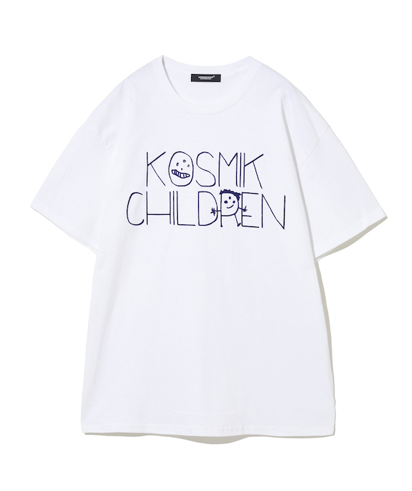 エキシビションの開催を記念して制作されたTシャツは、大人からキッズサイズまで用意されている。“KOSMIK CHILDREN“のロゴと、今回作品にもなっているグラフィックをコラージュした計3種のデザインで展開。それぞれの柄でベースの生地を変え、サイズや形も異なった特別な仕様になっている。