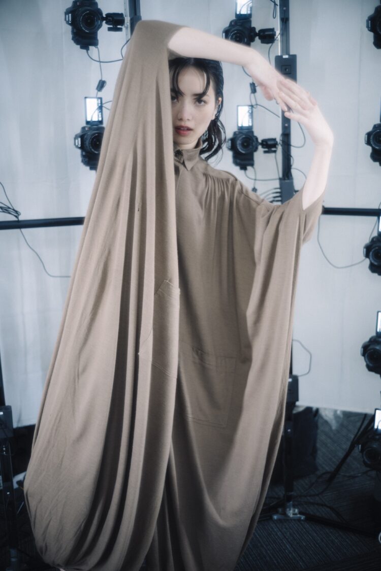写真集は、小松菜奈を被写体として迎えた、7月18日午後7時7分からアクセスできるオンライン展覧会の撮影の舞台裏を、フォトグラファーのE-WAXがドキュメンタリー写真におさめた。展覧会ではマネキンに服を着せつけるのではなく、服を纏った小松を3Dで撮影。すべて小松がマネキン役を演じ、小松自身が創出する自由自在なポーズで展示する。