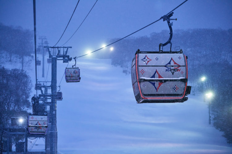 《ルイ・ヴィトン》の象徴的なモチーフをあしらった遊牧民のテント式住居・ユルトや、ゴンドラも登場。夜はライトアップされた幻想的な空間を楽しむことができる。ニセコの雪の世界に溶け込む期間限定のポップアップストアに、ぜひ足を運んでみてほしい。