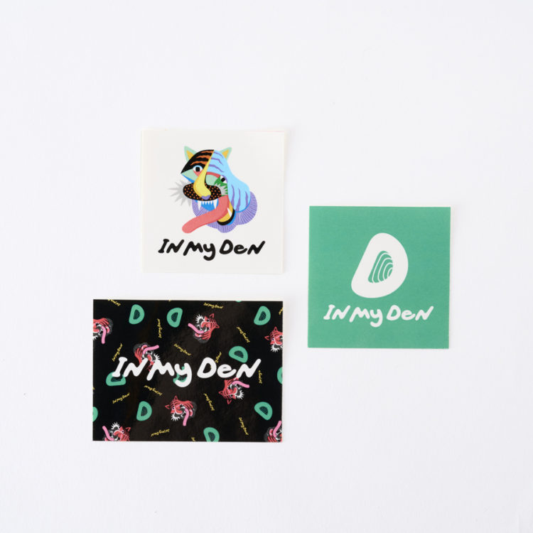 中学時代、同じバスケ部に所属した同級生だった2人が「いつか二人で何かを一緒にやりたい」と思い描いていたことから、岡田が自宅に飾る絵をよねもとに依頼したことがきっかけとなりブランドの立ち上げにいたったという。ブランド名の《IN MY DEN》には、巣や洞穴だけでなく、書斎や趣味を楽しむ部屋を意味するDenを用い、“秘密基地のような空間を表現していきたい”という2人のメッセージが込められている。