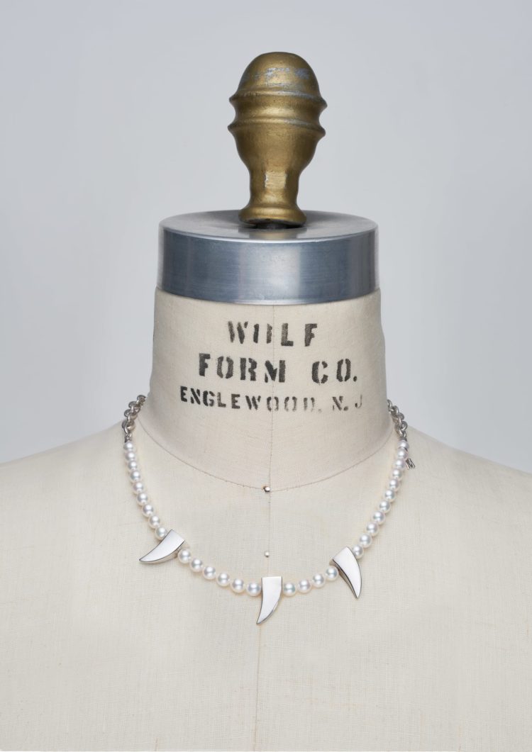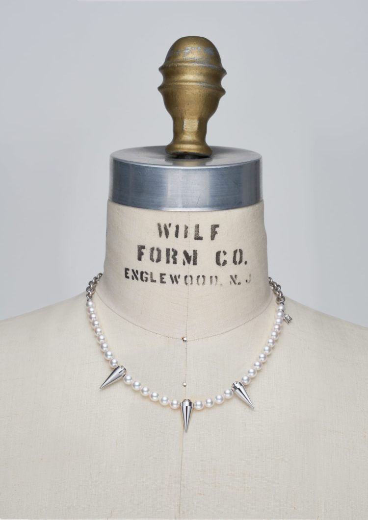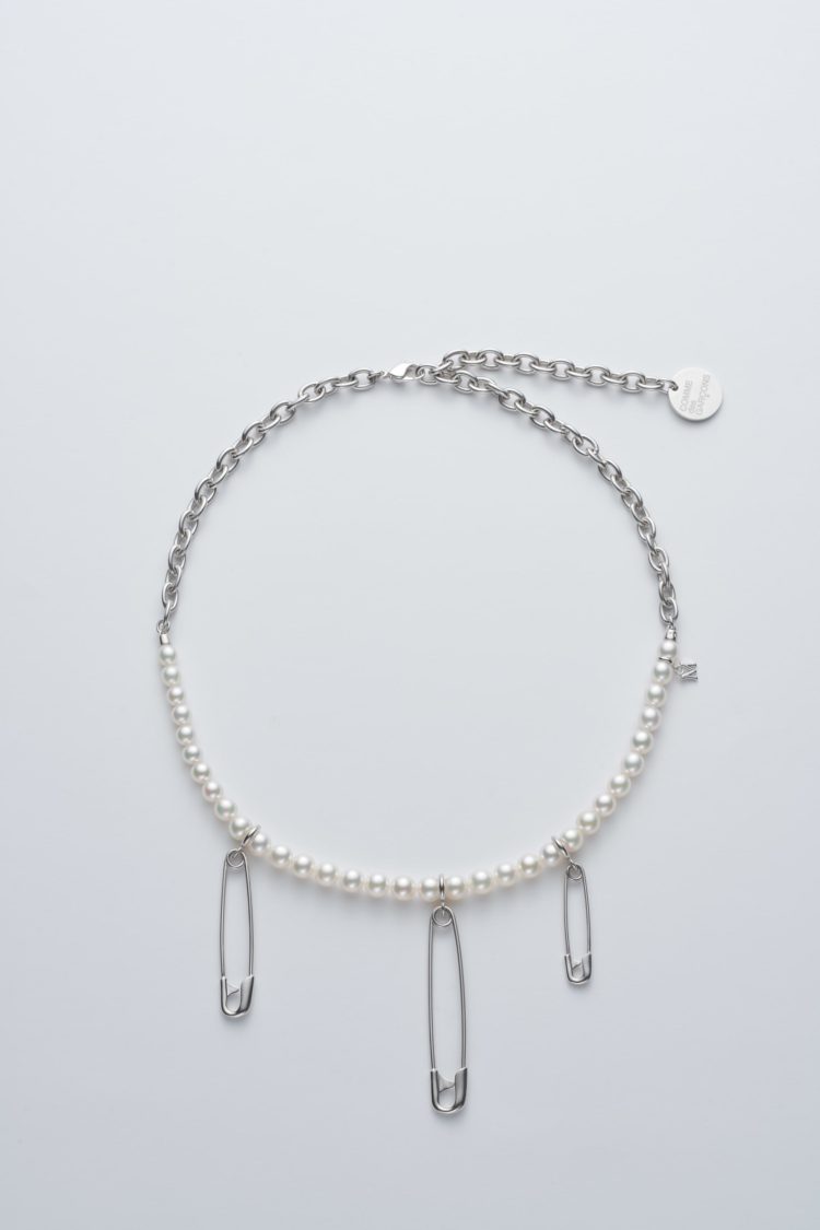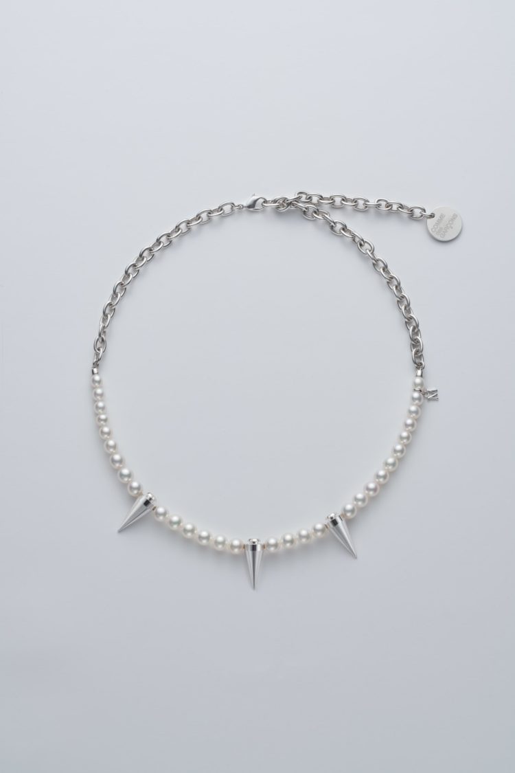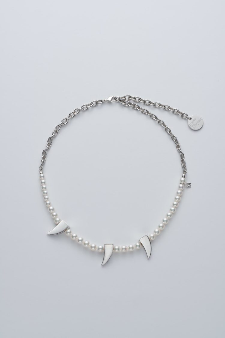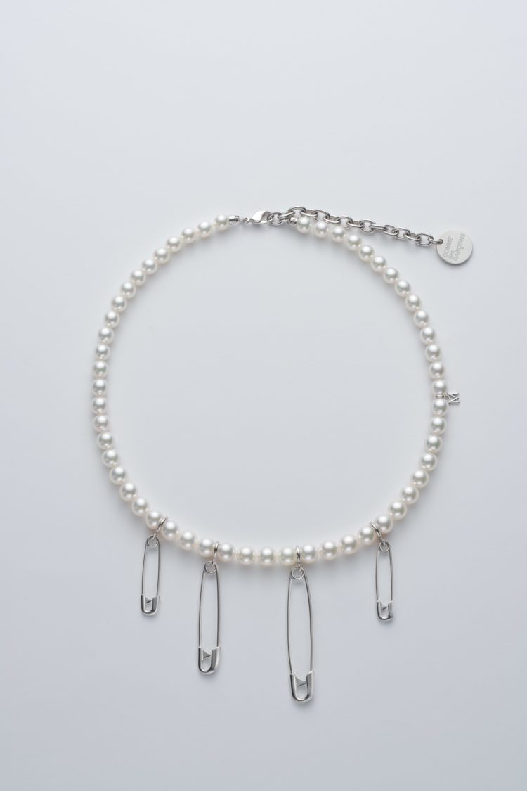前回に引き続き、2回目となるコレクションも川久保玲氏がデザインを担当。反逆的なニュアンスをより内包するセーフティピンやスタッズ、ファングをモチーフにしたパーツが《ミキモト》パールと組み合わさる。共存することがないはずの2つの要素がアイテムに昇華され、アイコニックな1つのデザインに仕上がった。