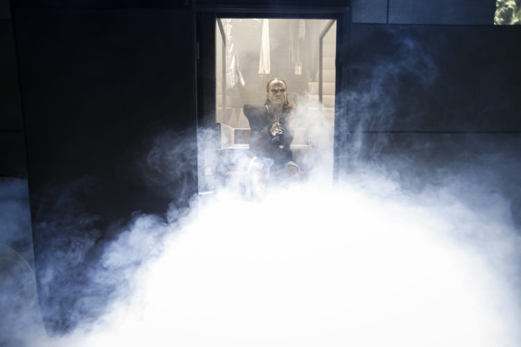 《モンクレール》 + 《リック オウエンス》コレクションの発売前日10月21日に、リック オウエンスのプライベートとクリエイティブの両面のパートナーであるミシェル ラミーが、オウエンスがデザインしたカスタムツアーバスからクリエイティブなプログラムを発表した。《モンクレール》のアイコニックなダウンを布張りしたツアーバスは超プロテクティブなコクーンであり、2020年初めにネバダ砂漠を横断したロードトリップにて2人を乗せて走行した後、2月に《モンクレール》 + 《リック オウエンス》のコレクションを発表するためミラノに現れた。