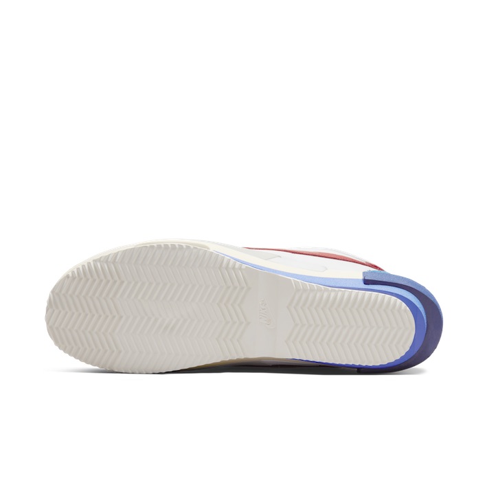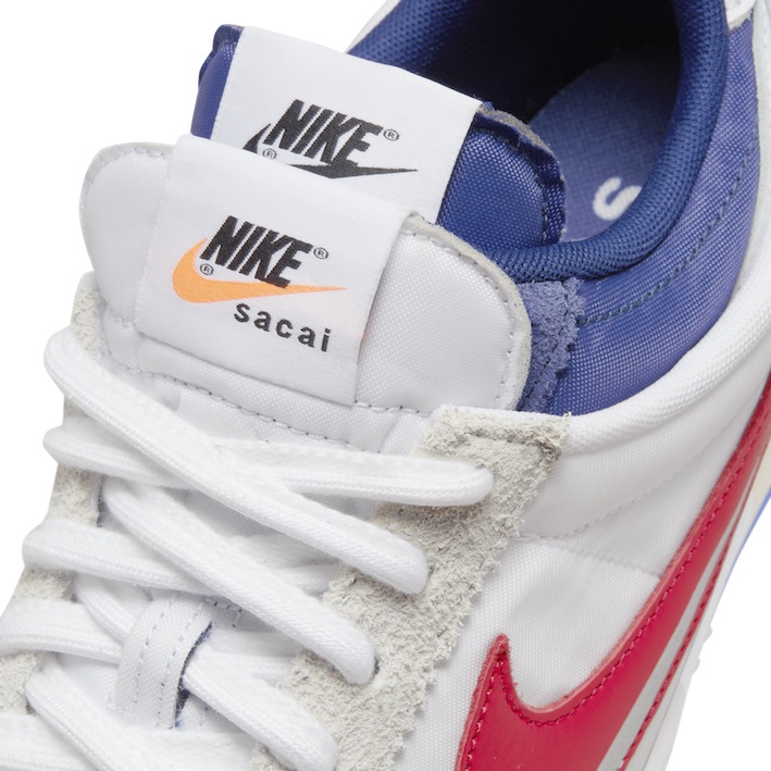 履き口、スウッシュロゴやシュータンを2つ重ねる《サカイ》ならではのディテールに加え、ミッドソールはオリジナルのウェッジデザインに素材の重なりを実験的に加え、過去と現在の両方を感じさせる。時代を超えて愛されるコルテッツが、《サカイ》によってクラシックとモダンの融合した特別な一足に仕上げられている。