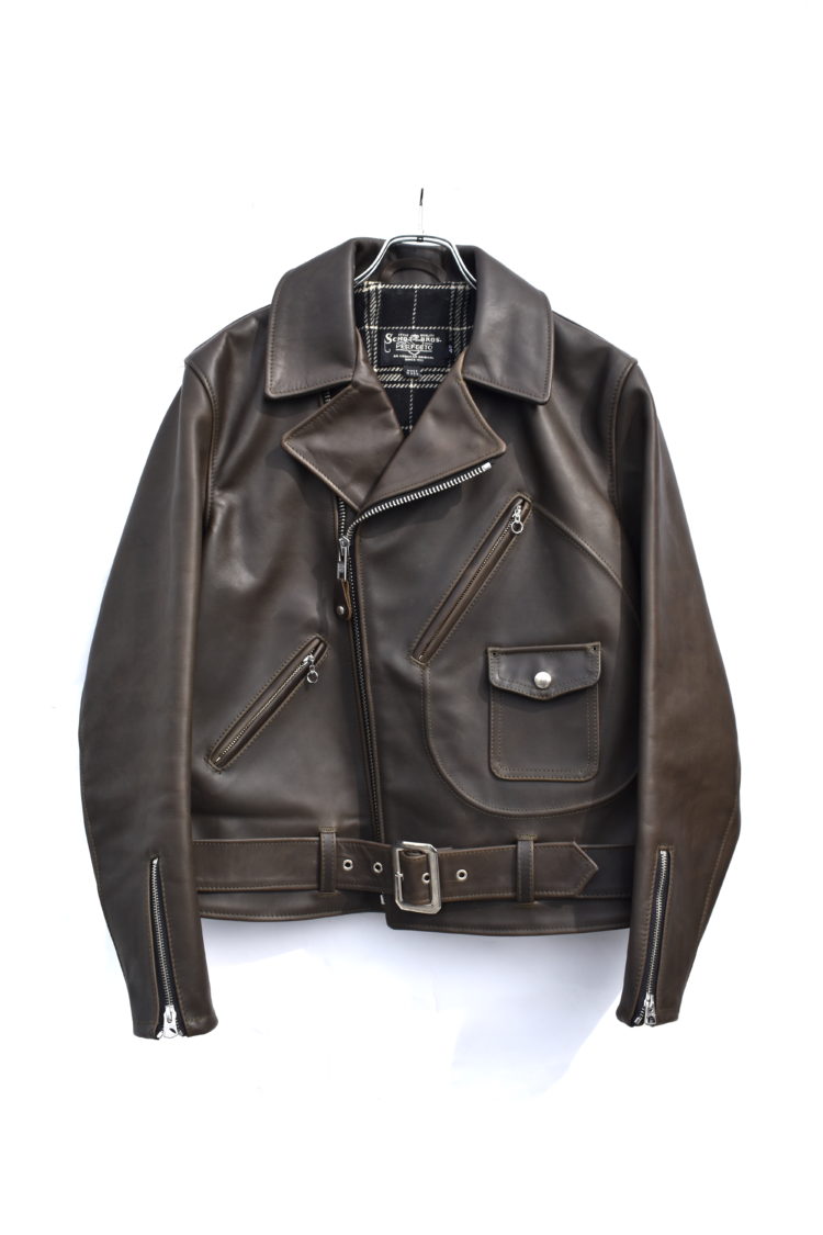 ≪ショット≫2024年秋冬から登場した、黒っぽいようでもありオリーブっぽくもある、独特な色味のブラウンが特徴的なライダースジャケットを紹介する。本アイテムは、《ショット》の代名詞である「ワンスター」よりもボックスのシルエットを採用し、50年代のディーポケットスタイルのライダースをモディファイドしている。クラシックなスタイルながら、見えないスナップボタンや着脱可能なベルト、エポレットを排除するなど、モダンな印象に仕上げている。素材には、米国ウィスコンシン州ミルウォーキーにある「セイデル社」でなめされた原皮を使用。「セイデルなめし革工場」は75年以上続いている、アメリカに残る数少ないなめし革工場のひとつ。美しいプルアップやセミベジタブルタンニン鞣しによって、まるでバターのような質感のカウレザーを生み出している。プルアップ加工は、革製品の表面に圧力を加えることで、その色や質感が変化する特殊な加工方法。革の表面に微細なシワや色の変化が生じ、使い込むほどに色合いや風合いが増すため、高級感や経年変化を存分に楽しめる。生産数に限りがあるそうなので、早めの検討をお勧めする。¥242,000(税込)