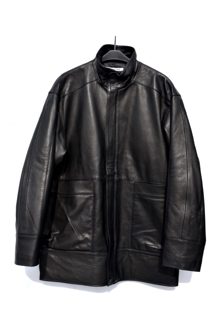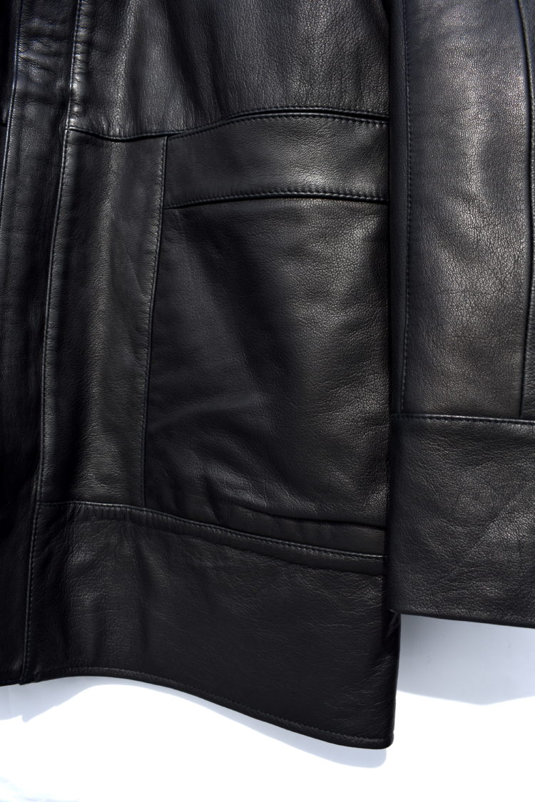 デザイナーの川上淳也氏が手掛ける≪セブンバイセブン≫は、ヴィンテージに造詣が深い、氏の豊富な知識と経験を基に、ヴィンテージのディテールを再現するだけでなく、過去のアーカイヴを踏まえて、新しい価値のある服を提唱している。紹介する山羊革を使用したレザーコートは、1900年代初頭に自動車乗車用に設計された外衣の一種である「カーコート」に着想している。カーコートといえば、レギュラーカラーと2つのポケットを備えたミニマルなデザインが多く見られるが、本アイテムでは、スタンドネック仕様や革の切り替え部分に合わせてポケットを配置するなど、無骨なイメージのカーコートを洗練された印象にアップデートしている。幅広く設けた裾周りのディテールは、着用時に特徴的なシルエットを生み出してくれる。ブランドを象徴するレザーアイテムの中でも、一際洗練された印象の仕上がりとなったカーコートらしからぬカーコートが完成した。牛革と勘違いしてしまうほどの厚みを出した山羊革とキルティング仕様の裏地により、本格的な防寒着として、この冬に重宝すること間違いなし。¥176,000(税込)