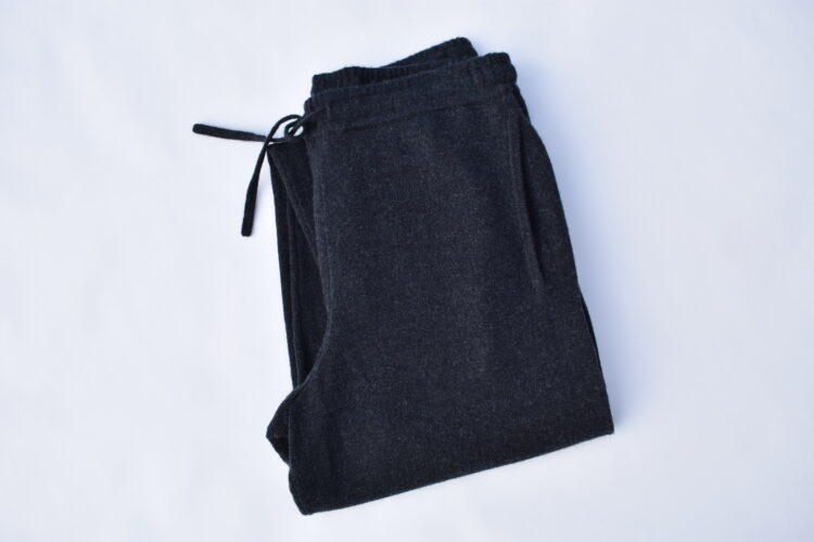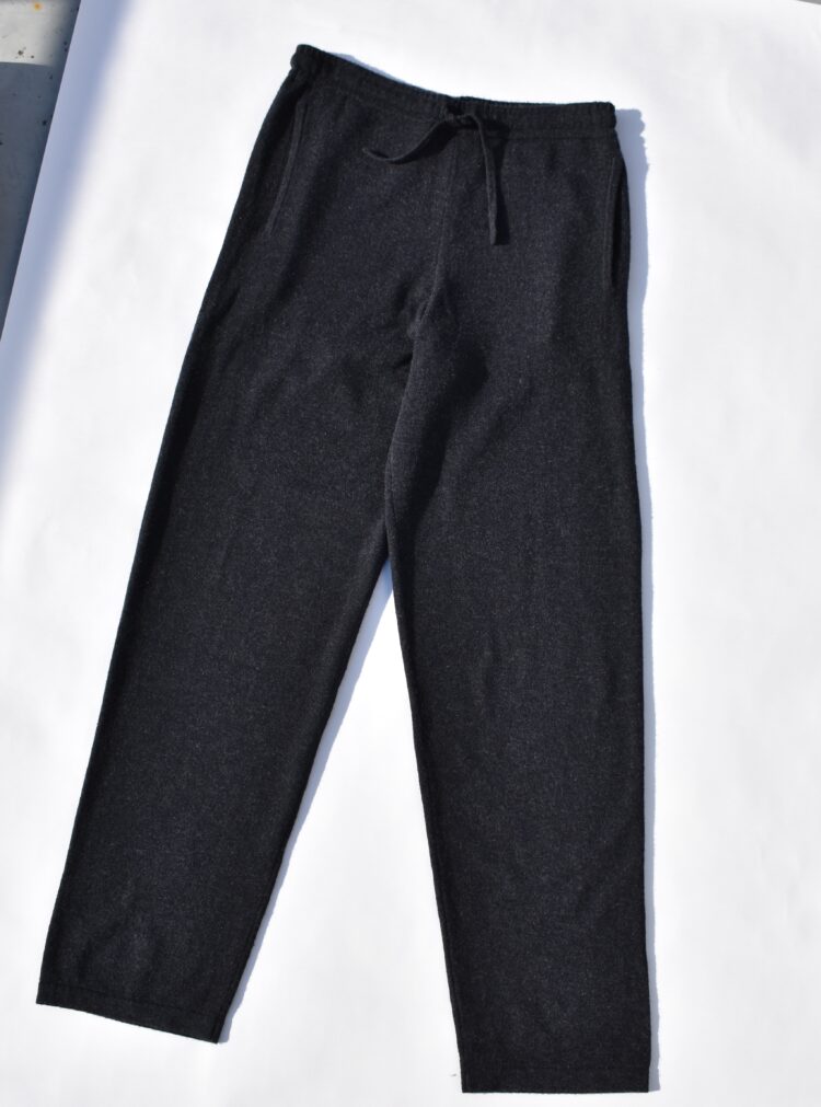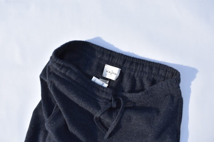 1918年創業のフランスの老舗ブランドである《ル カシャ》。最高級カシミヤやリネンなど天然素材を使って「快適でエレガンス」なホームウェアやリゾートウェアを展開している。ココ・シャネルも愛したラグジュアリーライフスタイルブランドが手がけるアイテムの中で注目したのが、深いネイビーのニットパンツ。上品な色みを引き立てるかのような、体に沿うジャストなフィット感が魅力的。スリムなシルエットも相まってフランスの伝統的な家系が手がけるロマンを感じさせてくれるカシミヤを纏いたい。