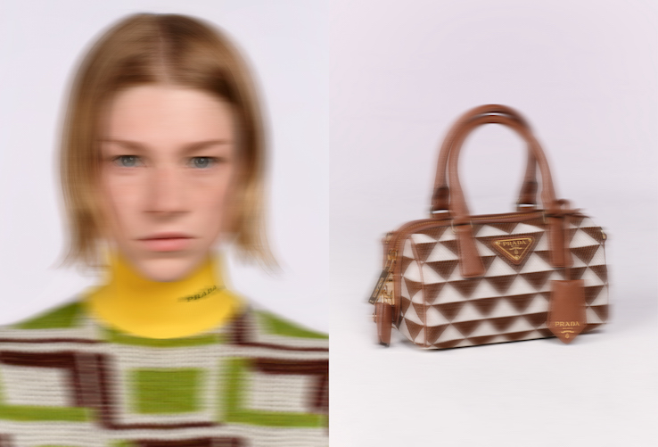 また、作品モデルとなったハンター・シェイファーは演技によって姿かたちを変え、トライアングルで構成されるプラダのコードをグラフィカルに表現したシンボルの特性を掘り下げた。