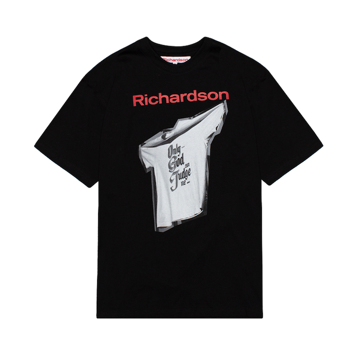 今回のコラボレーションアイテムでは、レンズの中にレンズがあるようなメタイメージを使用し、リチャードソンのTシャツをシムズが撮影した写真をTシャツのアートワークにし、ファッションとその写真という2つのクリエイティブの対話を表現している。