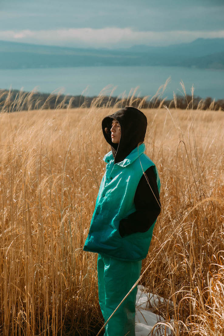 ファーストコレクションは地元富士吉田の豊かな自然から色のインスパイアを受け、富士の青、白樺の緑、銀杏の黄、赤富士の赤、芝桜の桃、つつじの紫の6色を起点とし、1色では表すことのできない天気や季節が変化する自然の瞬間を切り取るデザインをした。また、独自に色を重ね合わせ自然に溶け込む様子もコレクションで表現している。