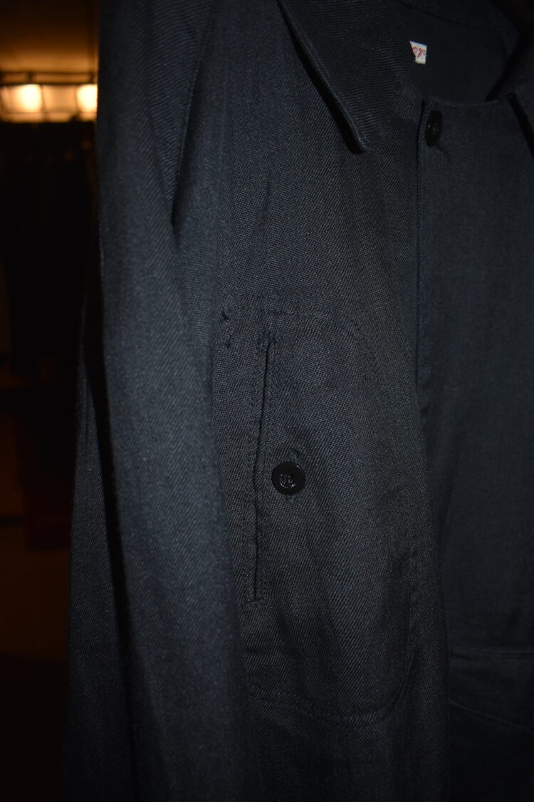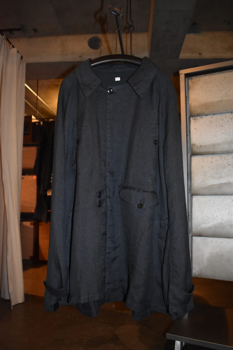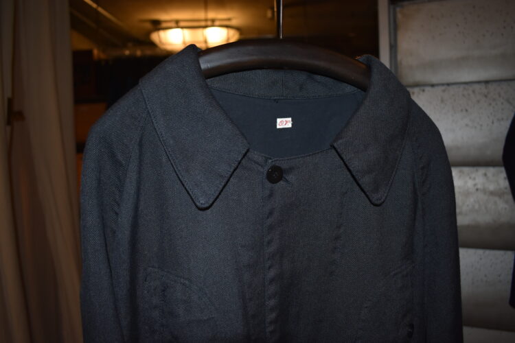ここに紹介するアウターは、宇多氏がフランスを周っている際に出会った、今までに見たことがないと言う仕様のハンティングジャケットが着想源となっている。「おそらく、1920年代から30年代にブルジョアの方がパーソナルオーダーしたオリジナルのハンティングジャケットと思われる一着をサンプリングしました。そのジャケットはさらに所有者によってリメイクされたものでした。ポケットは当時のディテールをそのまま引き継いでいますが、一般的なジャケットでは前ボタン部分に付くはずの前立てが、離れた位置へとアレンジされています。それが僕の手にわたる前の所有者なのか、最初に着た人なのかは不明ですが……。アイテム単体として、珍しいうえに美しいディテールだったのでデザインソースとして購入させていただきました」と話す宇多氏。それをさらに《ウティ》が提案する日常に寄り添うカジュアルなデザインを体現するために、細身であったジャケットをゆったりとしたシルエットへと昇華させた。「デザインソースになったそのハンティングジャケットは、世界で僕しか持っていないと思います」。そう話す宇多氏による渾身の一着を纏わずにはいられない。