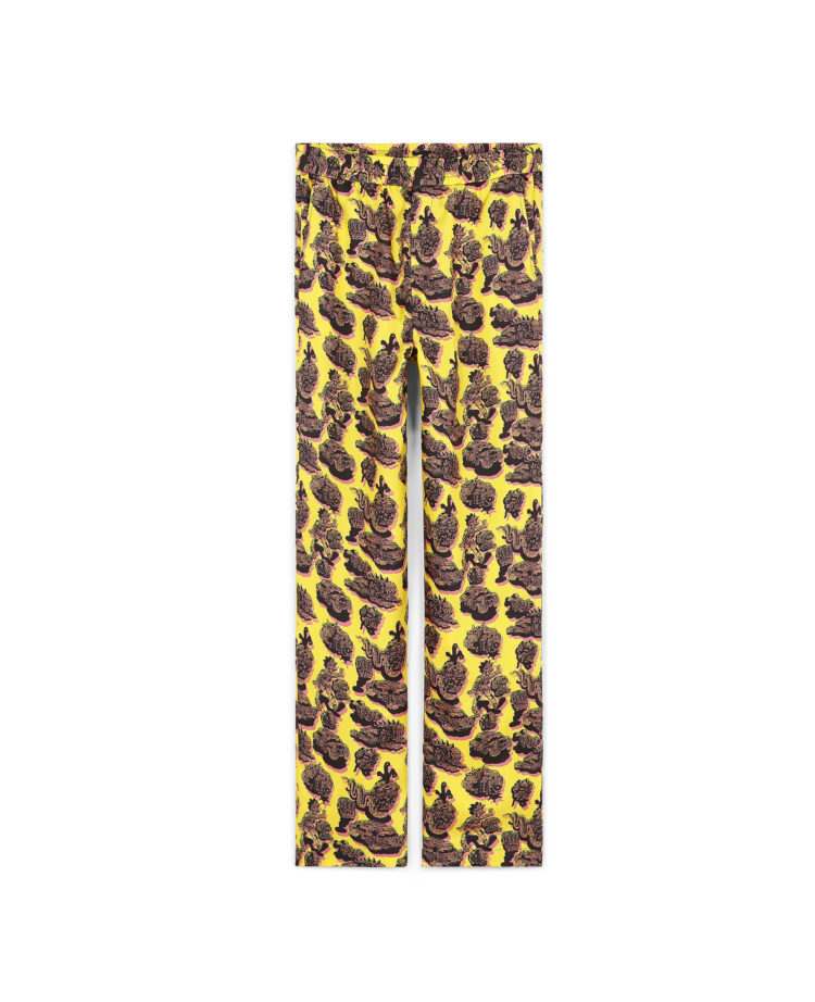 当初、私たちは都会的なユートピアをテーマに、ヒエロニムスの「快楽の園」やロジャーディーンの作品、1970年代のSFシーンをインスピレーションに取り組みました。そこにアメリカのガソリンスタンドのユニフォーム、DIYのパンクバンドのフライヤー、そして80年代のLPレコードのジャケットのラフでもっとグラフィカルな要素を加えました。あらゆるものの寄せ集めです。これらをフィルタリングし、私独自のやり方で再解釈しました。プリントのデザインを考えすぎるのではなく、自分の潜在意識を先導させようと心がけました。そうして出来上がった素材に、ステラのデザインチームが編集し、アレンジを加えたので、これは本当に素晴らしいコラボレーションプロセスでした。